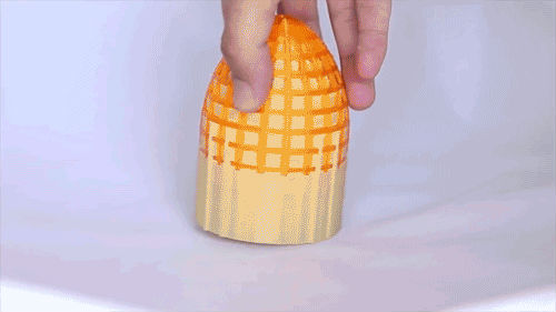 有些模型問題更嚴重,在我們制造一些如瓶子、鳥籠等擁有殼體結構的模型時,將會出現內部支撐難以拆取的情況。以往我們需要通過粉末打印來完成,現在我們可以通過雙噴頭使用水溶性材料來做支撐,就可以十分方便地取出模型內部的支撐,成本將大大降低。