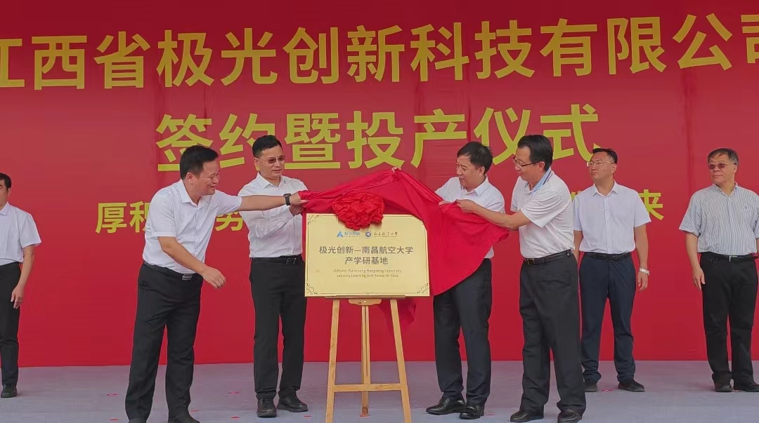 校企合作,不僅能提高教育培養人才的力度,也有利于企業的發展壯大,活動現場,寧都縣委副書記、寧都縣縣長何國杰,極光創新科技股份有限公司董事長陳曉海,南昌航空大學校長盧超,中航工業集團領導、極光創新科首席顧問唐軍,正式為南昌航空大學產學研合作基地揭牌,這也意味著南昌航空大學產學研合作基地正式成立!
