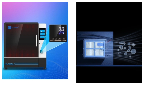 SLA2040還配置了多層空氣過(guò)濾網(wǎng),有效凈化打印環(huán)境和料池樹(shù)脂異味,讓打印環(huán)境更舒適干凈!