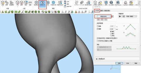 ③在功能頁(yè)上,可選擇設(shè)置倒角,即將尖銳的切割角去銳化,也設(shè)置間隙,以方便后期拼合。另外有一個(gè)比較重要的功能,即“鎖定多段線(xiàn)”,由于模型和切割線(xiàn)并不是保持不變相對(duì)位置,而是可調(diào)整的,所以這個(gè)的功能的開(kāi)啟和關(guān)閉能改變不同的切割線(xiàn)固定方式,以方便調(diào)整模型角度切割。