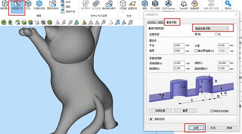 ④調(diào)整好后點(diǎn)擊“應(yīng)用”即可沿著切割線(xiàn)把模型切割開(kāi)了。