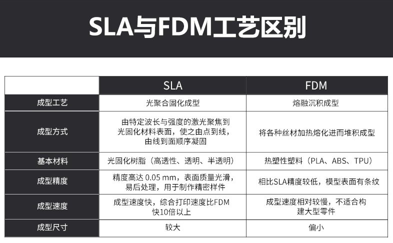 對(duì)于3D打印機(jī)來(lái)說(shuō),最常見(jiàn)的機(jī)型就是FDM和SLA兩種類型,但是相較于FDM 3D打印機(jī),一般來(lái)說(shuō)更貴的工業(yè)級(jí)SLA 3D打印機(jī)無(wú)論是從打印速度還是成型精度都更具有優(yōu)勢(shì)。