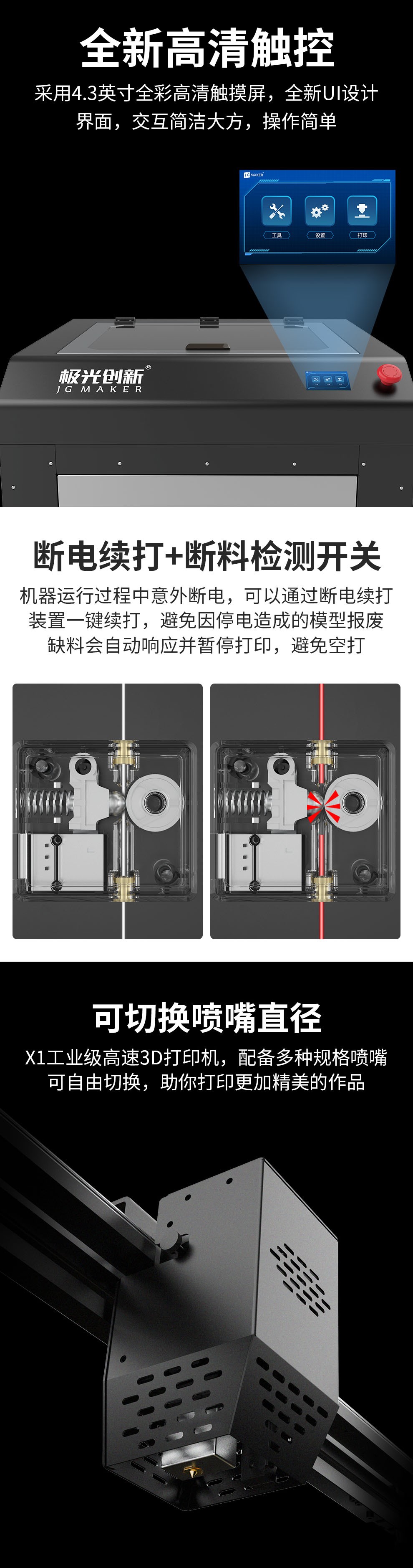 打印速度:0~300mm/s噴嘴直徑:0.4/0.8可選