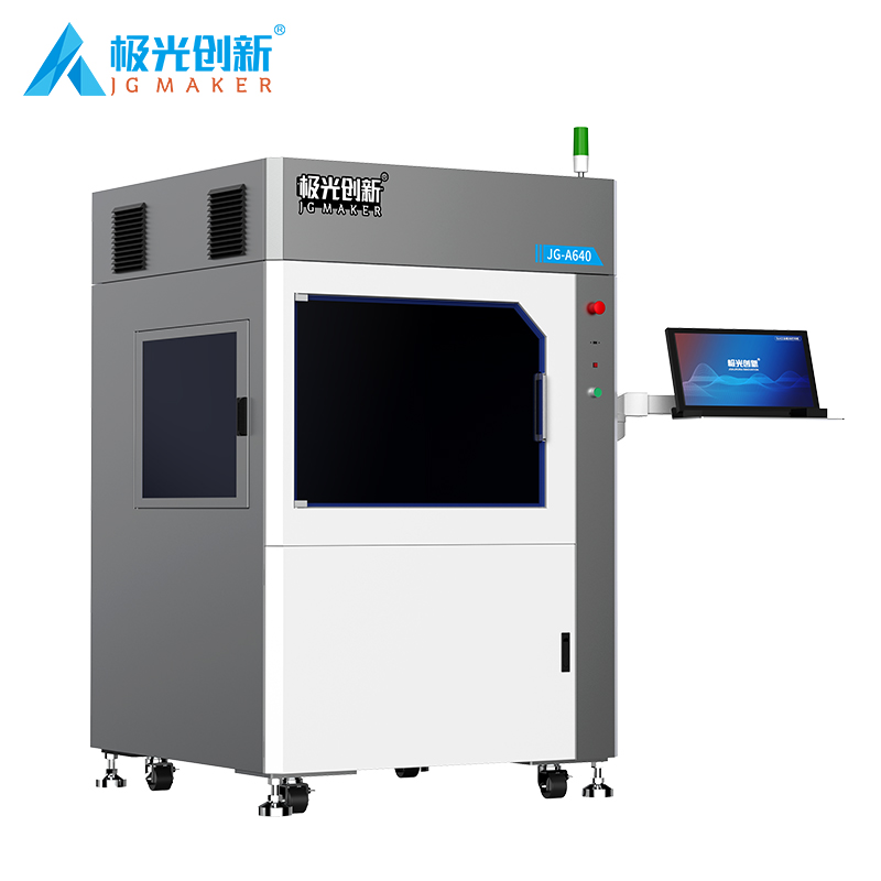 型號JG-A640,其最大成型尺寸可達600mm(X)*600mm(Y)*400mm(Z),精密制作層厚 0.1mm,極大程度的滿足了用戶對尺寸與精度需求,同時使用全固態激光器。