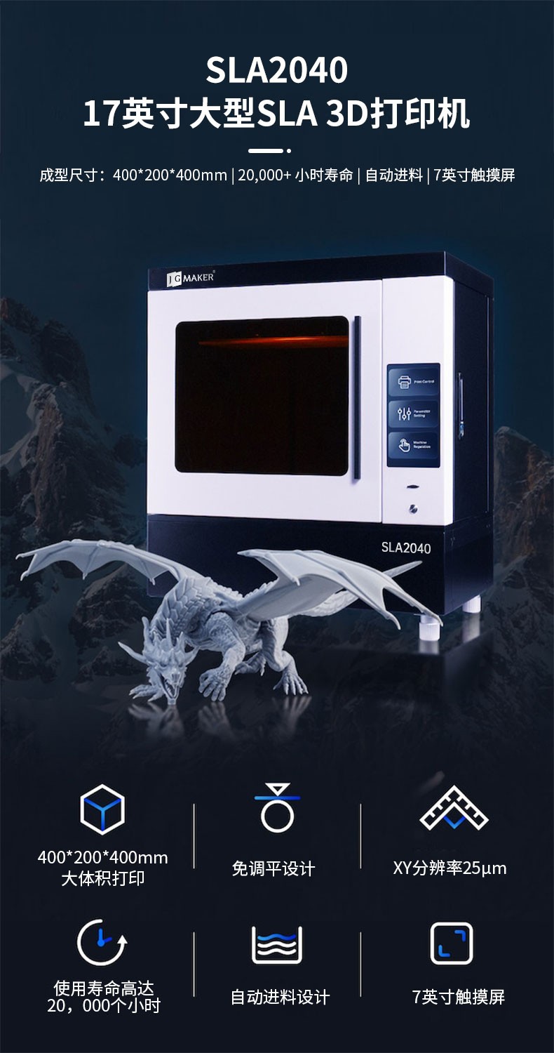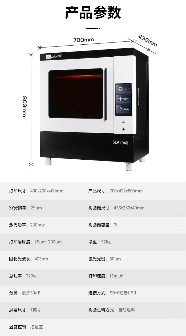 大空間 400*200*400mm xy分辨率25μm 層厚度25-200μm