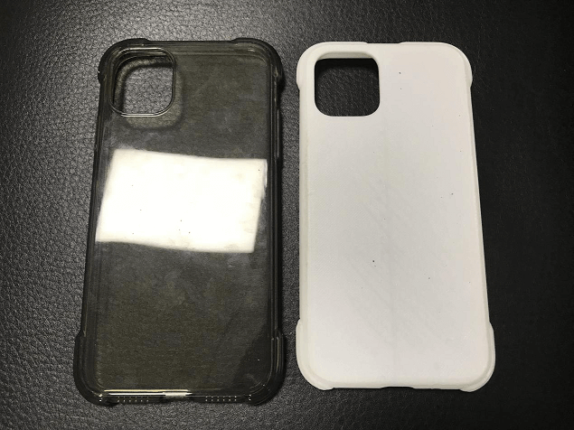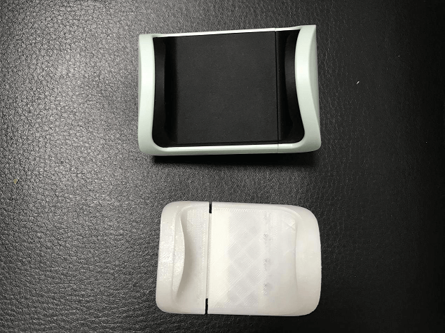 3D打印手機殼白模展示,對比實物圖,可以看得出來,大小尺寸經過研發工程師的修改,更合適配套新款手機尺寸。